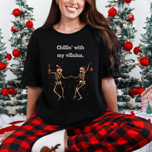Funny Dancing Christmas Skeletons Unisex T-Shirt, Villains Holiday Shirt, Festive Soft Tee, Skeleton Dance Shirt, Graphic Tee