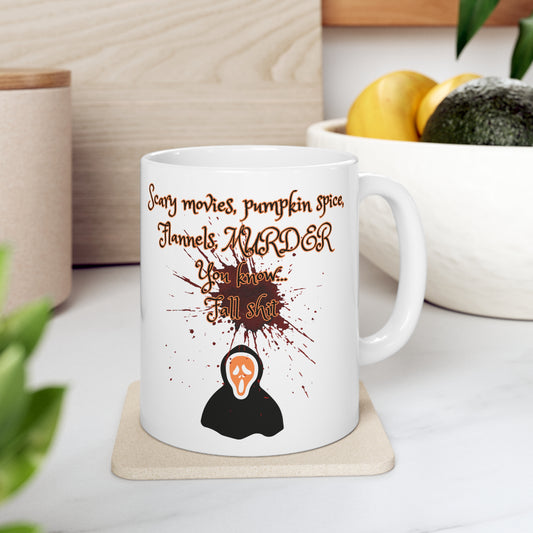 Scary movies, pumpkin spice, Flannels, MURDER You know... Fall shit coffee mug