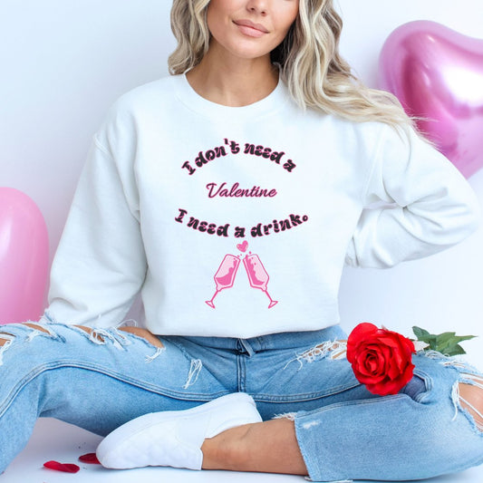 Anti Valentine Club I Don't Need A Valentine I Need A Drink Sweatshirt